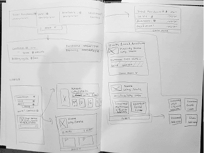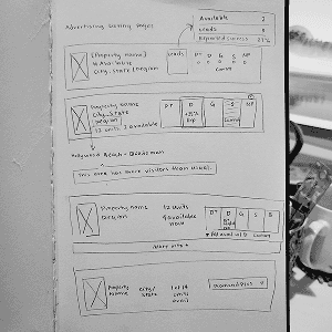 Initial explorations focused on how property managers could see their available advertising slots at a glance. Early sketches mapped ways to organize data by property and quickly indicate where coverage could be reassigned.